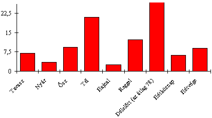 mértéke tavasszal (17 fő), pénteken és szombaton (16 fő), a legkevesebben