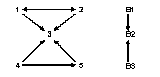 Tegyük fel, hogy a számok településeket jelentenek, a nyilak pedig azt jelzik, hogy honnan hová járnak az emberek dolgozni. Látható, hogy a „3” település valami központféle lehet, mert mindenki oda jár. Az „1” és „2” településről nem csak „3”-ba, hanem egymás felé is ingáznak emberek. Mondhatjuk, hogy az „1” és „2” település között nincs is különbség, azaz ekvivalensek, persze csak strukturálisan, azaz kapcsolataik tekintetében. Ha a két települést ezentúl együtt akarjuk kezelni, akkor úgy emlegetjük őket, hogy az „1. blokk”. A „3”-mal jelölt központ egyedül is egy blokk, mert strukturálisan nincs más hozzá hasonló szereplő. Nevezzük „2. blokk”-nak. Végül a „4” és „5” településeket szívesen besorolnánk egy újabb blokkba, de a figyelmesebb szemlélő egy apró különbséget fedezhet fel köztük. Az ábra szerint a „4” településről járnak emberek az „5”-be dolgozni, de fordítva ez nem igaz. A döntést, hogy egy blokkba soroljuk-e az egymáshoz hasonló helyzetű, de mégsem strukturálisan ekvivalens szereplőket, különböző algoritmusok segítik. Ezek közül az egyik legelterjedtebb, de nem feltétlenül minden helyzetben a „legjobb” algoritmus a CONCOR elemzés. A CONCOR eljárás a mátrix oszlopai és sorai között számol korrelációt, amelynek eredményeként egy korrelációs mátrixot kap. A korrelációs mátrix értékei 0 és 1 közötti értékek. Ezután a korrelációs mátrix sorai és oszlopai közt számol korrelációt, és így tovább. Az ismétlődések (iterációk) addig tartanak, amíg a sokadik korrelációs mátrix csak néhány alcsoportból (al-mátrixból) áll, amelynek elemei csak vagy 1 vagy -1 értékeket vesznek fel. Ezeket egy-egy blokknak tekinthetjük, és a továbbiakban így hivatkozunk rájuk. Nézzünk egy példát!